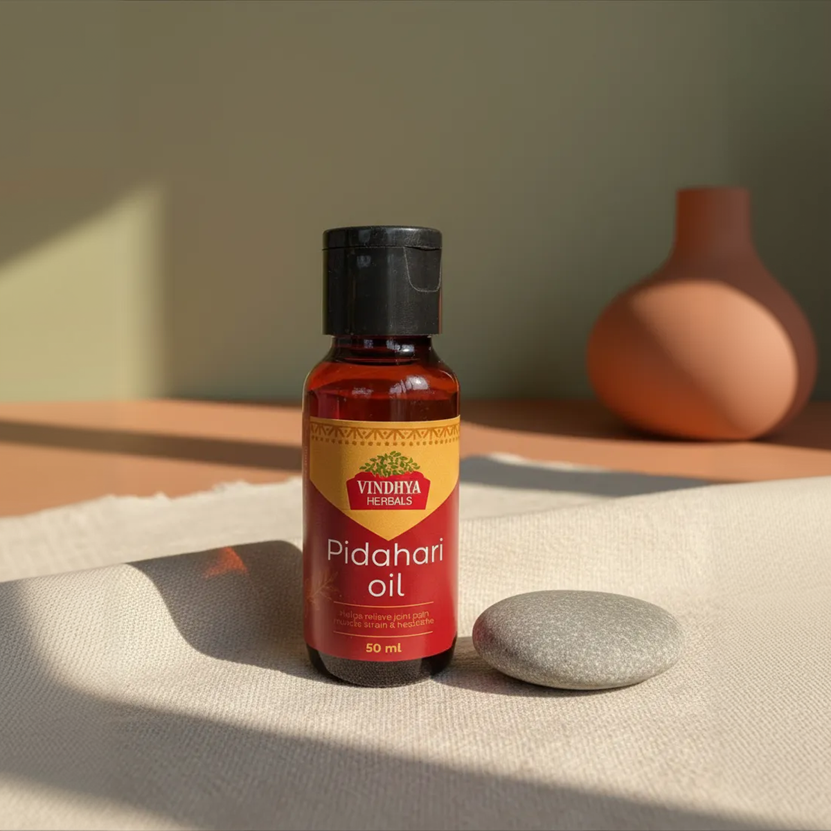 Vindhya Herbals Peedahari Tail is a herbal pain‑relief oil formulated to soothe joint and muscle discomfort and help ease headaches with regular topical application.